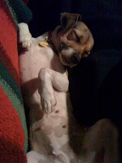Maddie is settling in to being an England. She is still not thrilled about being in her crate at night or the Gentle Leader we use for her walks but overall she is completely rotten.